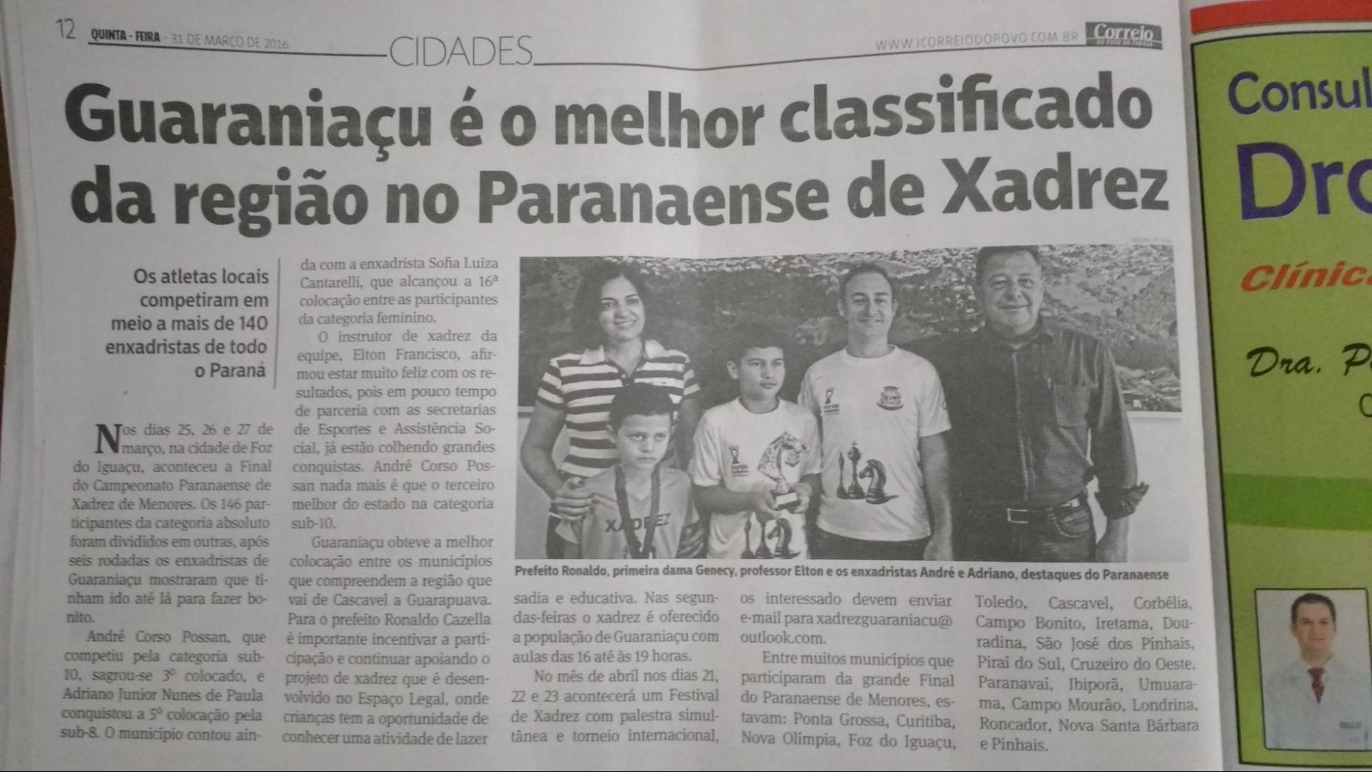 3° lugar no campeonato paranaense de xadrez - Foz do Iguaçu - PR - 2016